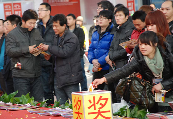 活動現(xiàn)場,保賜利不僅通過專場秀展示著品牌實力,也在舞臺側(cè)面通過保賜利專業(yè)展柜陳列的樣品和現(xiàn)場觀眾進行面對面的交流,同時,在為每位觀眾派發(fā)保賜利“龍年精品巨獻特刊”時,也為每位觀眾派贈了一張本次活動的抽獎券。在保賜利專場秀抽獎活動第一天第一場,便有著人氣爆棚之勢,現(xiàn)場參與抽獎觀眾達到800多人次,并由保賜利市場總監(jiān)劉利明先生為參與者抽出了10名中獎者,并現(xiàn)場為他們派發(fā)了價值588元的保賜利“車窗*車體二合一撥水鍍膜劑套裝”。