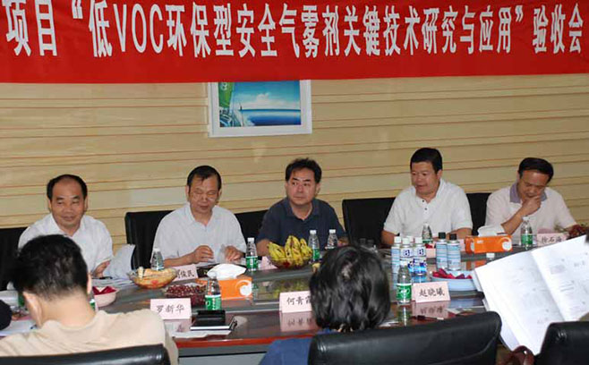 2011年9月20日,廣州市自主創(chuàng)新一區(qū)一項(xiàng)目“低voc環(huán)保型安全氣霧劑關(guān)鍵技術(shù)研究與應(yīng)用”驗(yàn)收?qǐng)?bào)告會(huì)于我司召開。廣州市科信局趙曉曦處長(zhǎng),從化市科信局盧紹輝局長(zhǎng)等一行領(lǐng)導(dǎo)蒞臨我司指導(dǎo),此外,此項(xiàng)目驗(yàn)收?qǐng)?bào)告會(huì)聘請(qǐng)了由中科院廣州化學(xué)院研究員廖兵(所長(zhǎng),并擔(dān)任該組長(zhǎng))等組成的專家組。