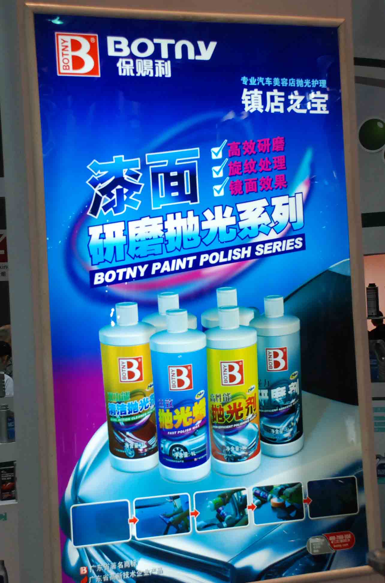 保賜利化工此次攜旗下BOTNY、已度明品牌養護產品強勢出擊,并借此機會將公司近期問世新產品(碳晶鍍膜、撥水鍍膜劑、研磨劑系列產品、燃油系統養護自帶壓力系列等)與新老客戶做了交流。本次展會,保賜利主題鮮明,目標直擊4S店群體并為之量身定制專業性產品及OEM合作方式,差異化的特色服務及雄厚的技術實力,贏得眾多專業客戶的青睞。保賜利此番更是以現場技術交流的方式,利用抗磨演示等方式展示出我司發動機深化養護系列產品的優勢,吸引了眾多4S店集團總經理、采購總監等領導的關注,并對我司現場演示效果給予了高度評價。展會上,保賜利還為客戶帶來終端店面形象改造專業性形象展柜,通體透明的有機玻璃,在燈光的折射下讓產品更顯耀眼,不時的吸引著客戶的矚目。