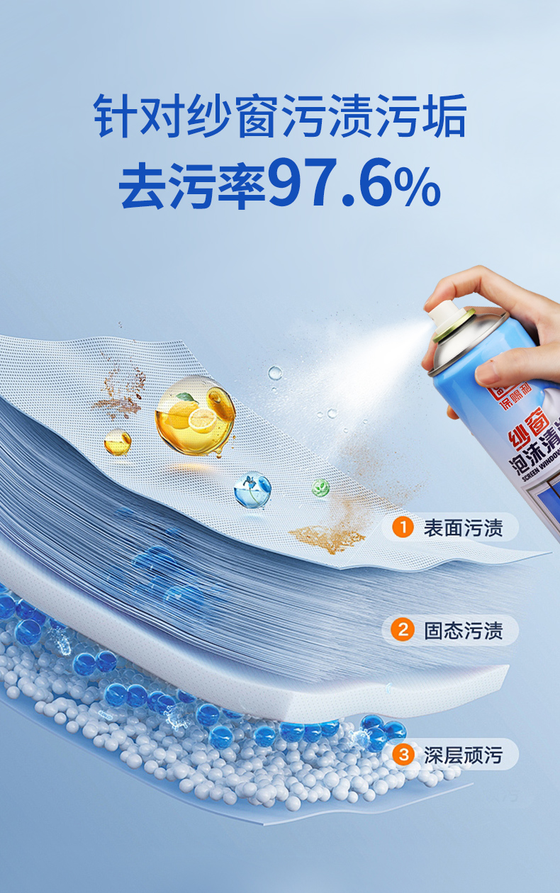 20年家政阿姨用了都說好!保賜利紗窗泡沫清洗劑,免拆免水洗,污垢自動掉下來!