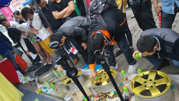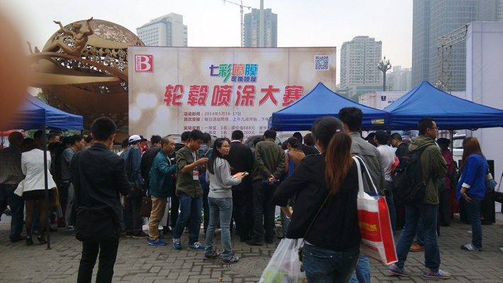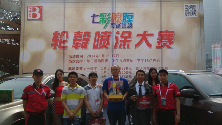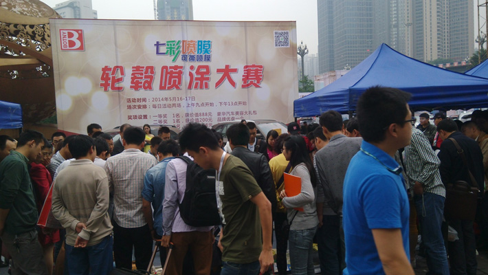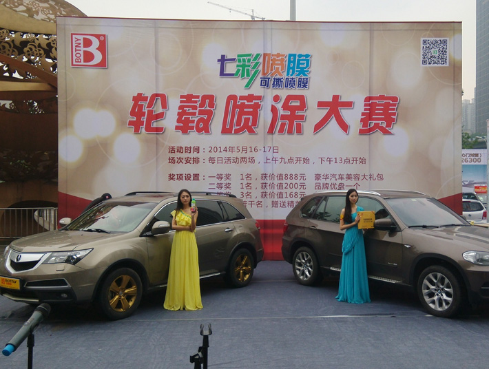 2014年5月16日,由重慶市人民政府和雅森國際展覽有限公司聯合主辦的“2014年中國汽車用品暨改裝汽車展覽會”在重慶國際會議展覽中心盛大開幕。保賜利作為本次展會主辦方力邀的知名品牌,不僅在室內場館強勢登陸,更在室外展館以150平方活動現場,為所有觀覽觀眾精心策劃了為期2天的保賜利七彩噴膜輪轂噴涂大賽活動。