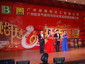 廣州保賜利化工有限公司、廣州歐亞氣霧劑與日化用品制造有限公司籌備多日的新春開年晚宴于2013年2月28日晚6點在從化南海食街拉開序幕,近兩千多人的晚宴現(xiàn)場顯得熱鬧非凡,充滿著激情、發(fā)布日期:2013-03-06 -